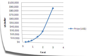 We can say that rate at which price of diamond increases is higher than the rate of increase in its weight. But note that, this comparison holds true only if other quality parameters i.e. cut, color and clarity of diamonds in question are same.