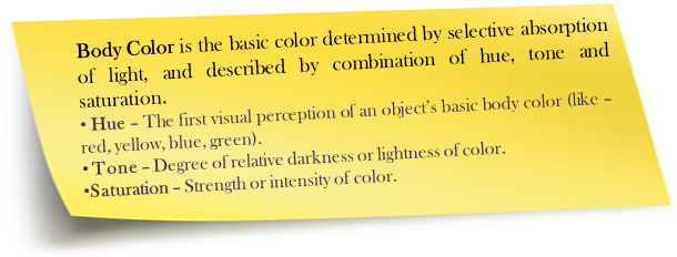Fancy color diamonds are available in various colors. To describe the diamond’s color, it requires combination of basic or dominant hue (primary color) name and any modifier hue (secondary color) name that might be necessary. For e.g.: